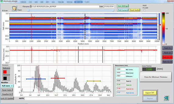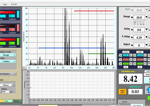采用超聲水耦合方式,通過(guò)雙晶探頭檢測,實現A掃描、B掃描顯示。
