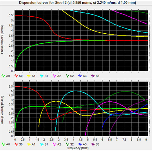 • 頻散曲線軟件:計算出不同材料和不同厚度速度與頻率的關系