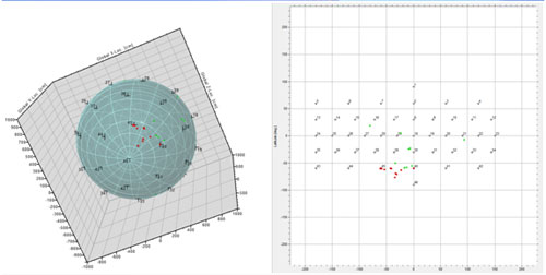 用經(jīng)緯度定義任意的傳感器位置和定位結果,結果也用X-Y-Z坐标的形式表示;球形體定位結果可以以三維圖形的形式顯示在屏幕中,并能(néng)顯示出經(jīng)緯度。球狀的三維圖形可以旋轉、縮放進(jìn)行觀察。定位圖中高密集度的區域能(néng)标示出聚類組。