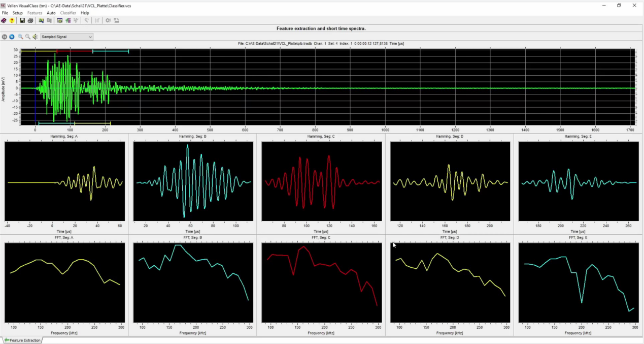 • Feature Extractor從波形中提取特征參數,可應用在VisualAE的數據列表,圖形和濾波中。