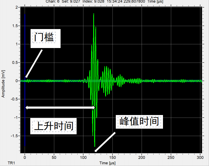 2.3、爲了使定位更加準确,除了具有不準确度分析軟件之外,還(hái)可以對(duì)到達時間進(jìn)行修正。一般我們選取過(guò)門檻的時刻爲到達時間,但有些特殊情況,如下圖所示,就需要結合實際的波形對(duì)到達時間進(jìn)行修正,以實現更加準确的定位。