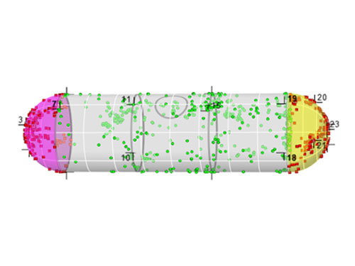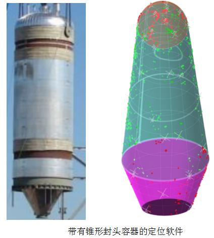 很多塔器或容器都(dōu)帶有錐形封頭,對(duì)于這(zhè)種(zhǒng)結構的檢測需要專用的錐面(miàn)定位軟件才能(néng)實現更加準确的定位。