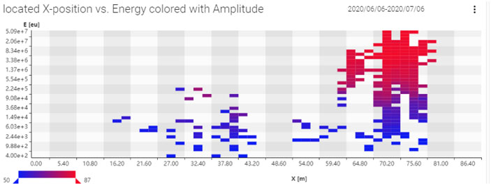 前端由德國(guó)Vallen公司聲發(fā)射系統采集數據并上傳到雲服務器,用戶通過(guò)可自定義顯示内容的雲端數據平台對(duì)數據進(jìn)行查看。定義的内容有聲發(fā)射特征參數圖,如幅值與時間的經(jīng)曆圖、能(néng)量與時間的經(jīng)曆圖和定位圖等,圖形形式有柱狀圖、點狀圖、線狀圖等。該平台可兼容電腦和智能(néng)手機,可以*.CSV格式和*.png格式導出數據。