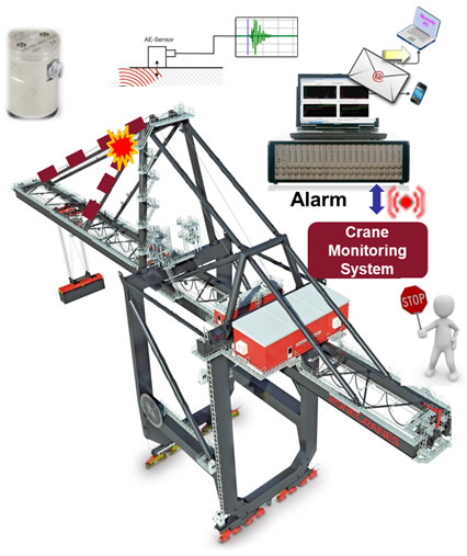 任務:利用聲發(fā)射系統對(duì)港口集裝箱起(qǐ)重機進(jìn)行長(cháng)期監測