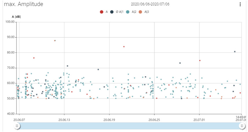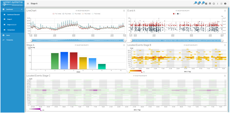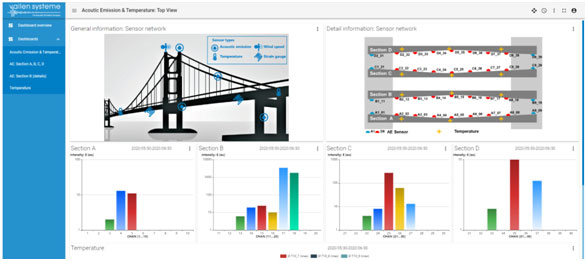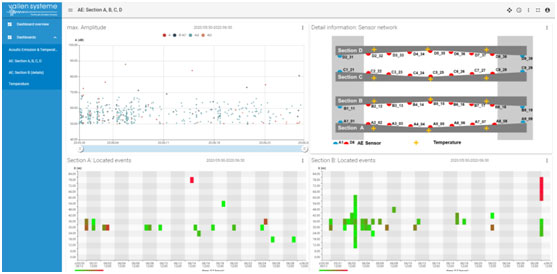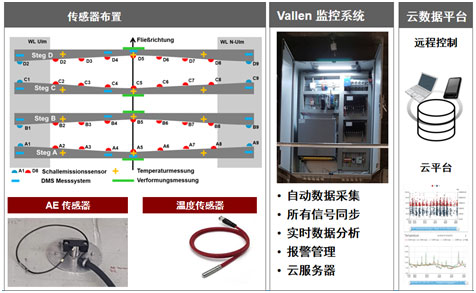 Vallen自動化管理軟件是監測系統中的核心軟件模塊。該軟件主要可以實現數據采集、數據分析(可視化)、報警處理、數據通信和數據存儲。操作人員可以自定義需要完成(chéng)的任務,如傳感器耦合狀态的驗證、數據存儲和上傳到雲平台、超過(guò)預設門檻的報警和報警處理方式等。