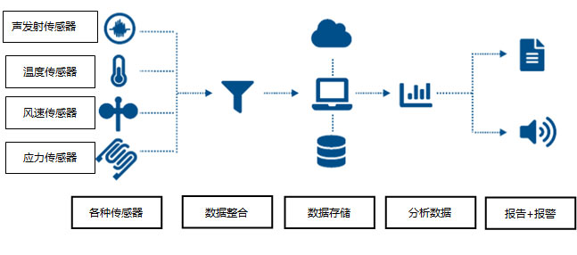 結構健康監測是指工程結構實施損傷監測和識别,這(zhè)裡(lǐ)所說的損傷包括材料特性的改變或結構系統的改變。結構健康監測過(guò)程就是使用傳感器陣列來獲取損傷信号,通過(guò)對(duì)這(zhè)些損傷信号的統計和分析來确定當前結構的健康狀況。聲發(fā)射結構健康監測系統就是利用聲發(fā)射技術對(duì)特種(zhǒng)設備、橋梁等做長(cháng)期監測的過(guò)程,以達到使特種(zhǒng)設備、橋梁等結構安全運行、延長(cháng)使用壽命,避免發(fā)生事(shì)故的目的。